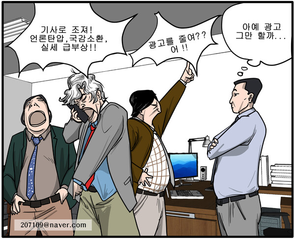 관련기사 [반론보도닷컴 만평] 광고 안 할 자유 김원경 207109@naver.com 다른기사 보기 저작권자 © 반론보도닷컴 무단전재 및 재배포 금지 개의 댓글 회원로그인 작성자 비밀번호 댓글 내용입력 댓글 정렬 최신순 추천순 답글순 BEST댓글 BEST 댓글 답글과 추천수를 합산하여 자동으로 노출됩니다. 닫기 더보기 댓글삭제 삭제한 댓글은 다시 복구할 수 없습니다. 그래도 삭제하시겠습니까? 비밀번호 댓글수정 댓글 수정은 작성 후 1분내에만 가능합니다. 본문 / 400 비밀번호 내 댓글 모음 닫기 주요기사 수출 대기업 10곳 중 7곳 "고환율·관세가 자금 압박 주범" 서울신문, ‘대한항공 잇단 보도'...배경에 관심 '제보를 구독하세요'...제보팀장 영업방식 우려 [인사] 인신윤위, 신임 이사에 곽혁 광고주협회 전무 선임 은퇴한 수도권 베이비부머, 지방 中企 구원투수 될까? 문학 전문 인터넷신문 'ABC뉴스', 기업 부정 기사 급증 문제없나?