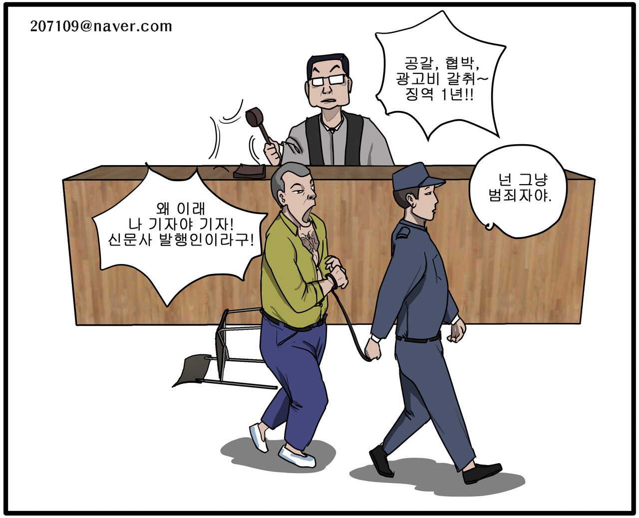 관련기사 공갈·협박·광고비 갈취 인터넷신문 발행인 실형…사이비언론에 경종 simple wk 207109@naver.com 다른기사 보기 저작권자 © 반론보도닷컴 무단전재 및 재배포 금지 개의 댓글 회원로그인 작성자 비밀번호 댓글 내용입력 댓글 정렬 최신순 추천순 답글순 BEST댓글 BEST 댓글 답글과 추천수를 합산하여 자동으로 노출됩니다. 닫기 더보기 댓글삭제 삭제한 댓글은 다시 복구할 수 없습니다. 그래도 삭제하시겠습니까? 비밀번호 댓글수정 댓글 수정은 작성 후 1분내에만 가능합니다. 본문 / 400 비밀번호 내 댓글 모음 닫기 주요기사 수출 대기업 10곳 중 7곳 "고환율·관세가 자금 압박 주범" 서울신문, ‘대한항공 잇단 보도'...배경에 관심 '제보를 구독하세요'...제보팀장 영업방식 우려 [인사] 인신윤위, 신임 이사에 곽혁 광고주협회 전무 선임 은퇴한 수도권 베이비부머, 지방 中企 구원투수 될까? 문학 전문 인터넷신문 'ABC뉴스', 기업 부정 기사 급증 문제없나?